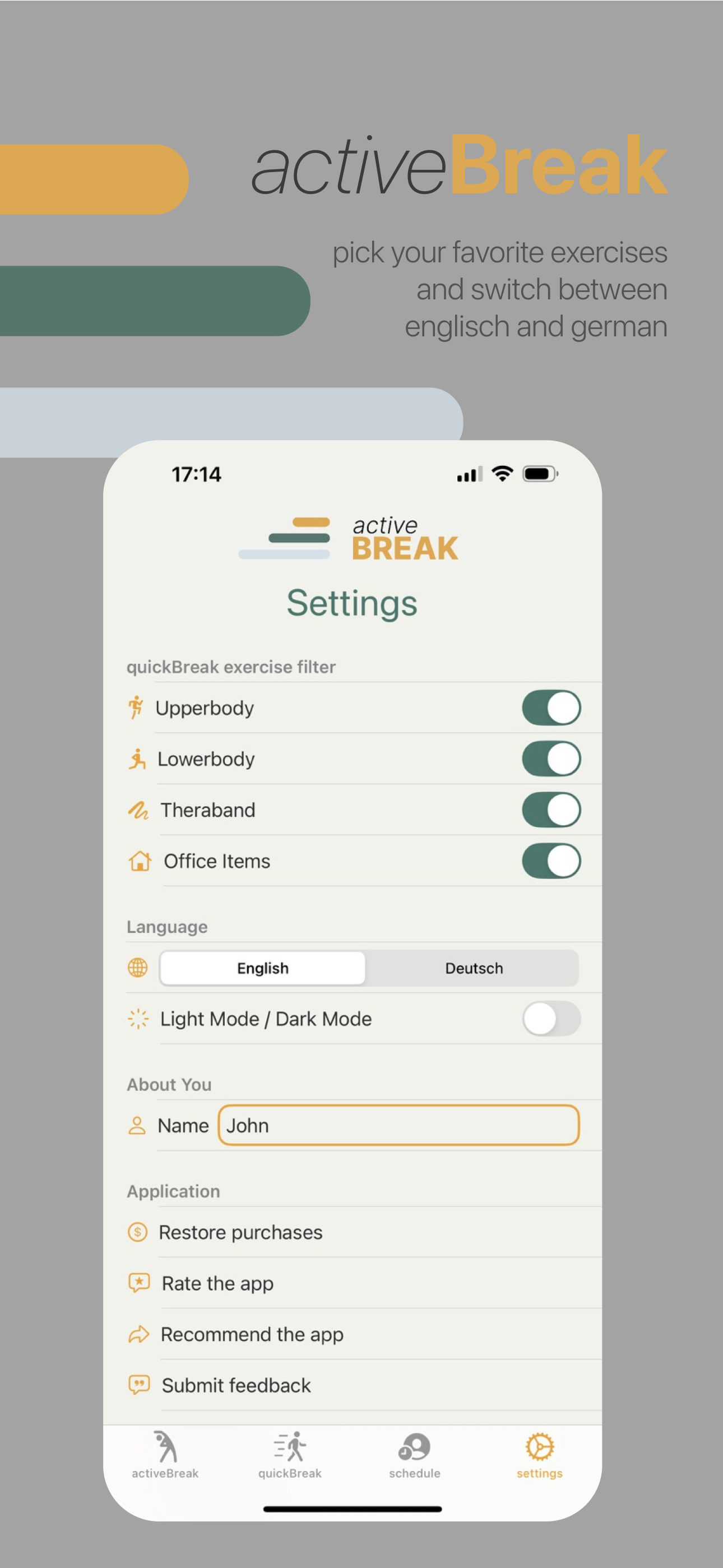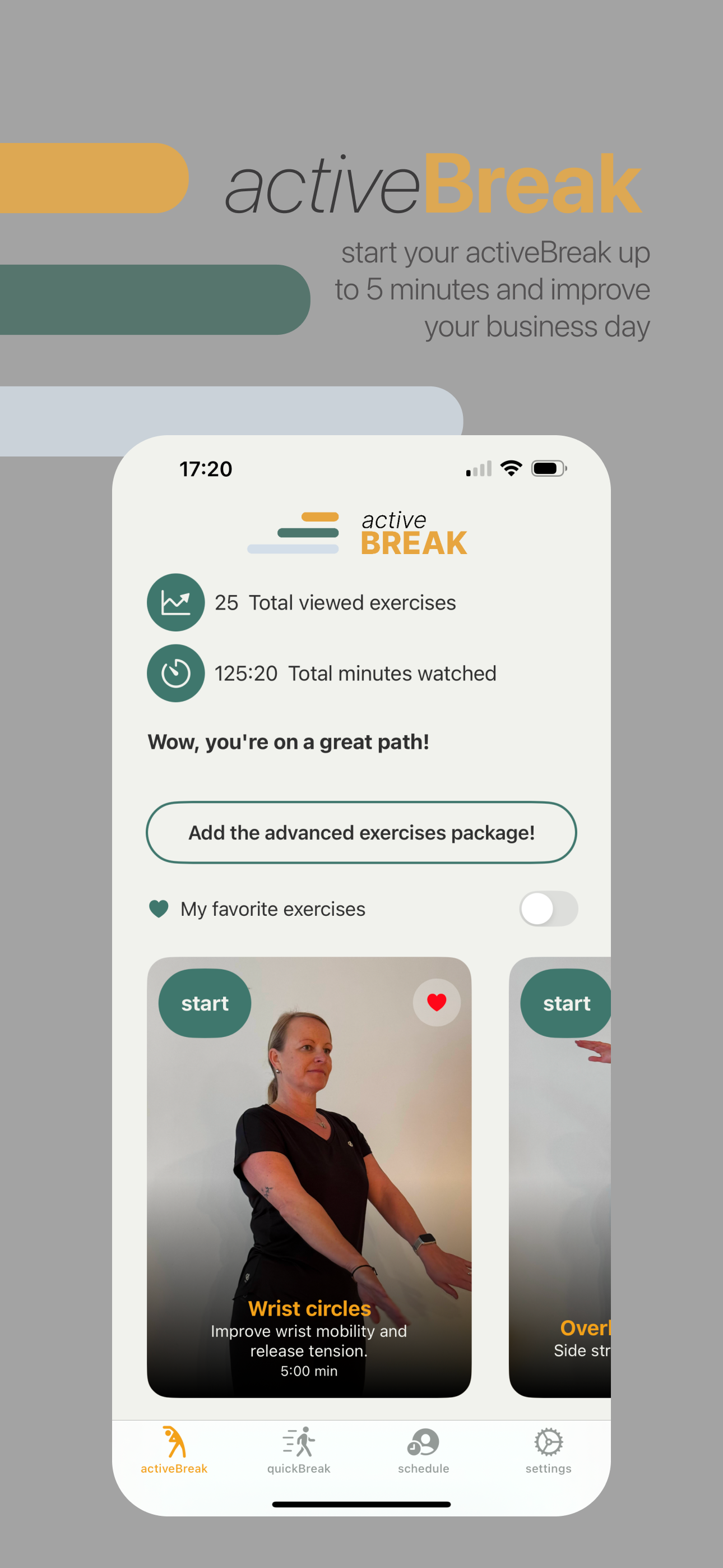 activeBreak helps users stay energized, reduce tension, and improve focus. Take a break that truly works – download activeBreak now!