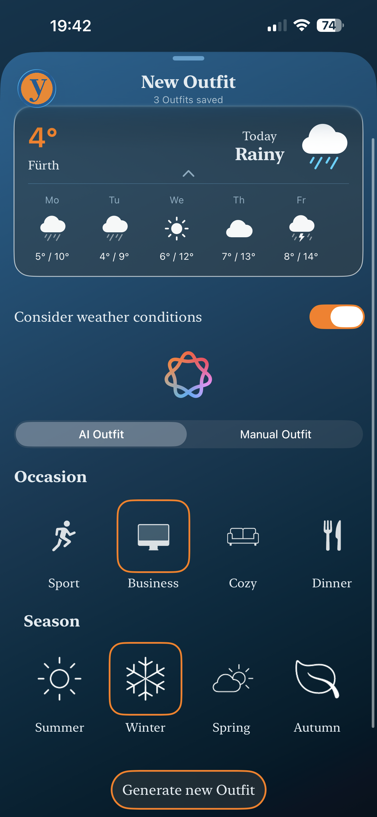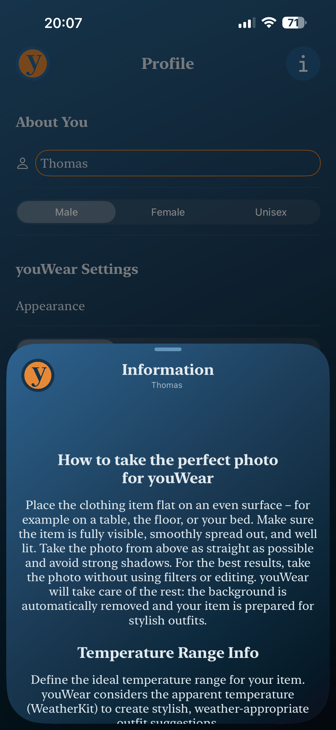 What should you wear today?The AI behind youWear creates outfit suggestions based on: ▪ your style ▪ your mood ▪ the current weather ▪ and the occasionSo you can find the perfect look every day — without overthinking it.